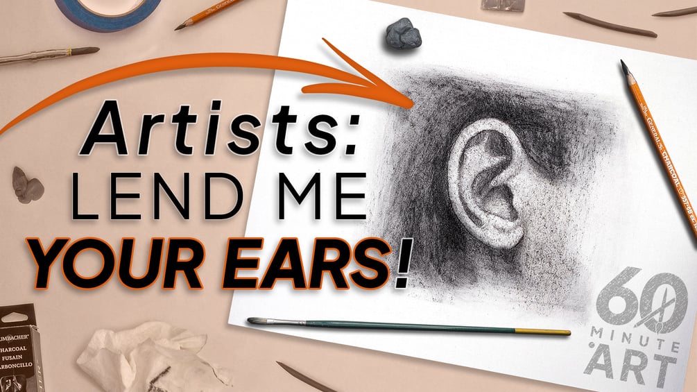 Drawing ears can be…fun? That’s unheard of! From the Portrait Features series, learn to draw an ear in charcoal. The ear can be a confusing feature to draw, but you will learn how to carefully create a line drawing and distinctly separate your values to make drawing the ear feel fun. There is no art theory, no in-depth history of the pencil, and no hoity-toity artisan paper. Grab a few basic supplies, and in under an hour, you will create a masterpiece.